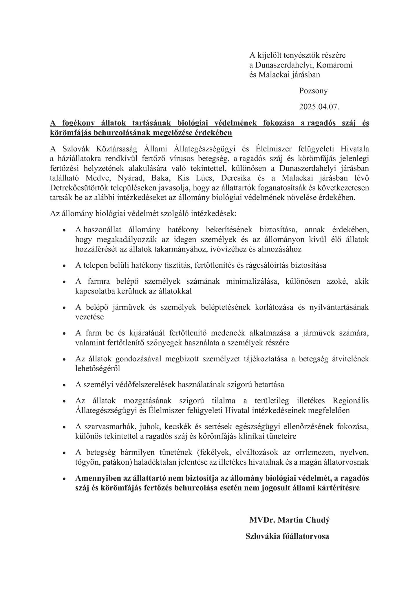 Podrobnosti, pokyny a povinnosti chovateľov zvierat nájdete v priloženom dokumente a na webovej stránke ŠVPS SR.